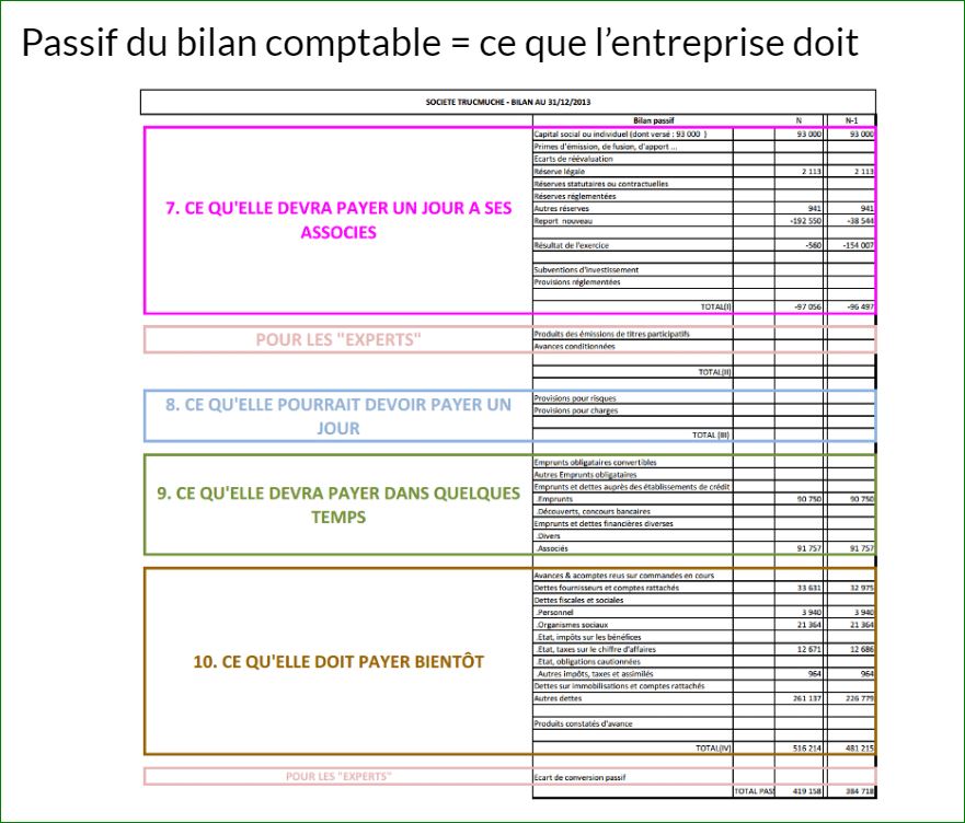 Au passif, on reprend toutes les dettes de l’entreprise.